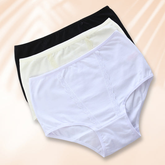 Panty Brasilera Algodón y Encaje en Cintura Pack x3 / Mujer E-2009