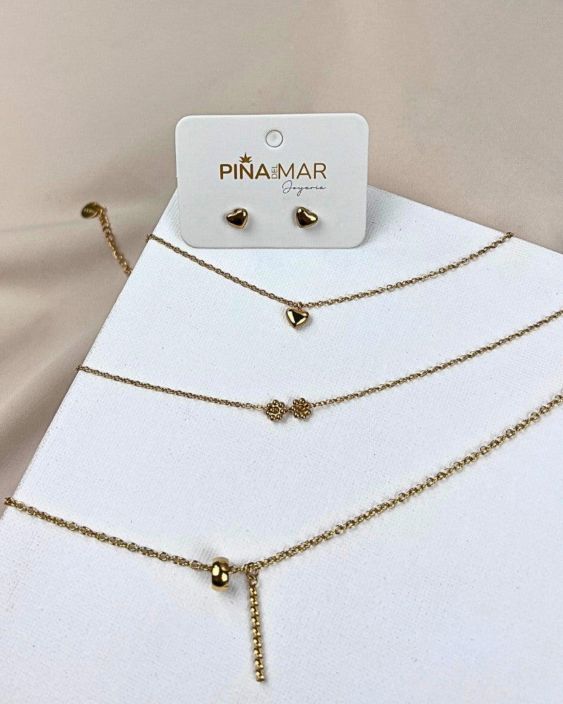 Transforma tu apariencia con este increíble conjunto de collar y aretes Quebec para mujer, fabricado en acero inoxidable y bañado en oro. Déjate enamorar por su brillo y encanto, y dale un toque de elegancia y moda a tu estilo con este esencial juego. ¡No lo puedes dejar pasar!